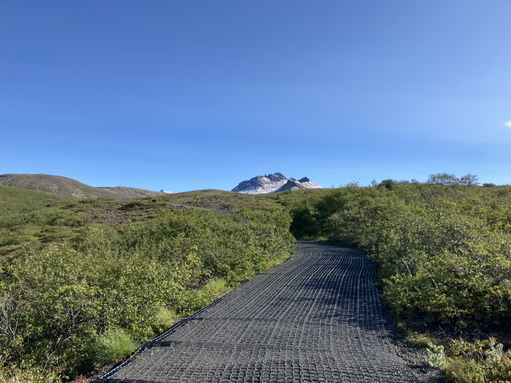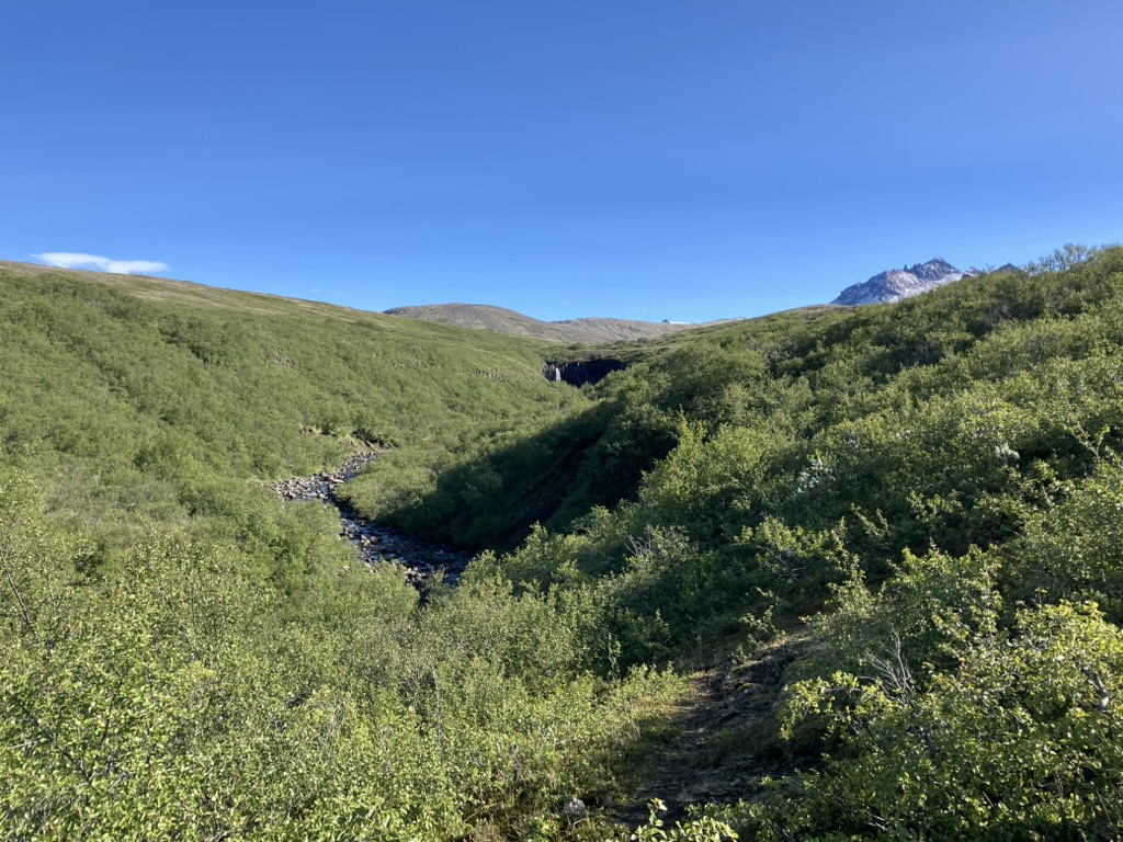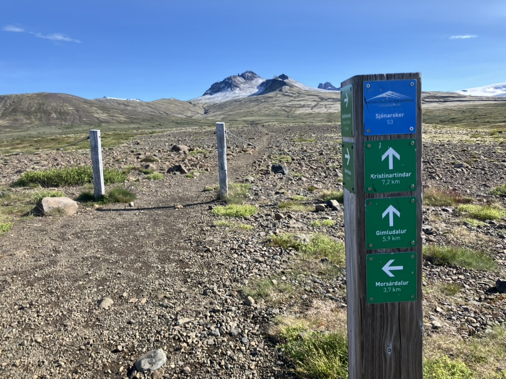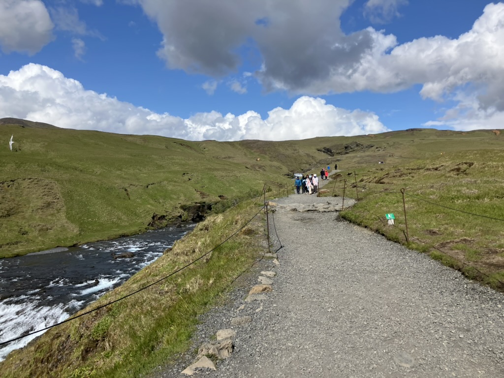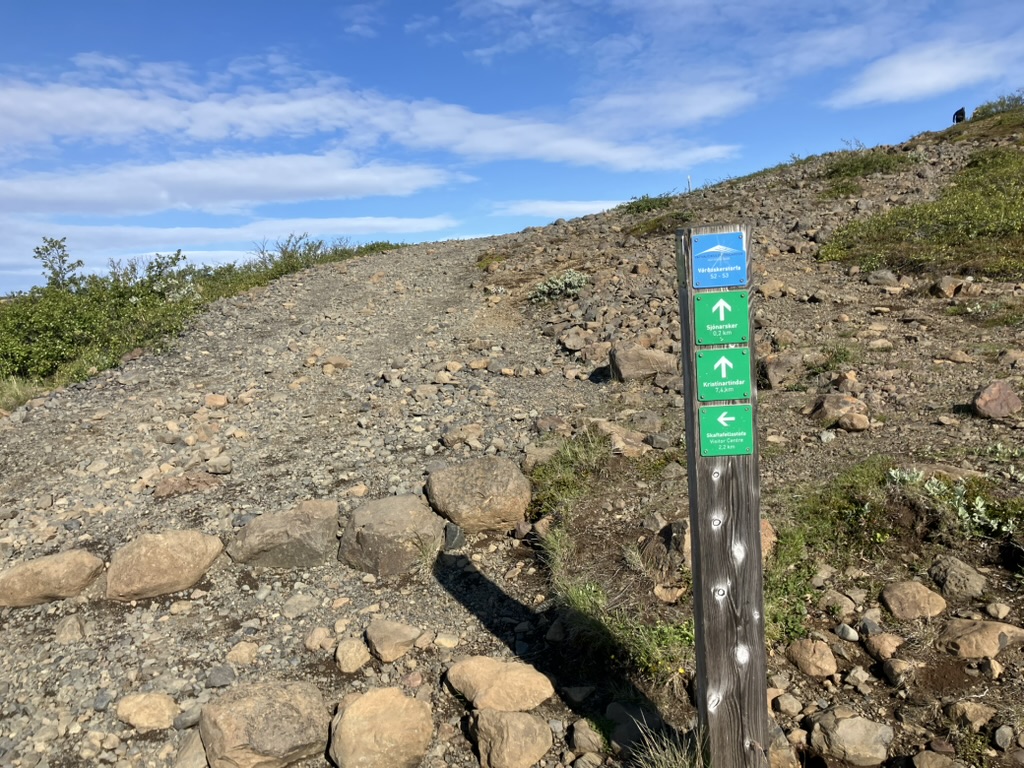 昨日宿泊したキャンプ場(Tjaldsvæðið í Svínafelli)から車で10分程で到着しました。ビジターセンターもあり、登山口もすぐにわかりました。滝までは30〜45分くらいのハイキング、まずはひたすら登ります。