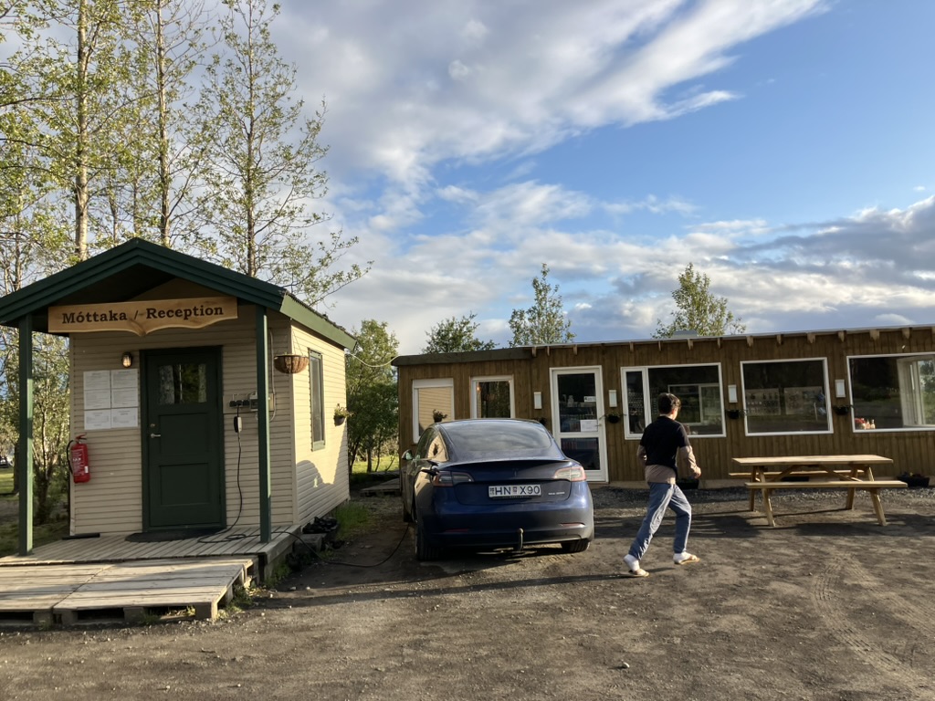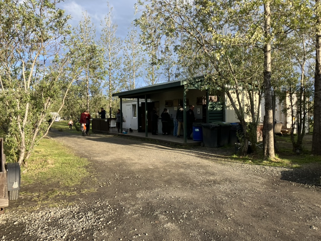 温泉にしっかり浸かったところで、そろそろ今日の寝床を探します。探してみるとすぐ側に。Reykholt Campsiteにしよう。受付を済ませて、場所を探しに。ちょっとした売店もありました。